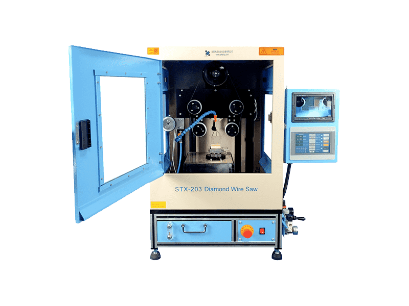 3.STX-203是一款连续切割型金刚石线切割机,设置好切割程序后试样连续进给,无需手动调节,切割后的样品尺寸精度高。