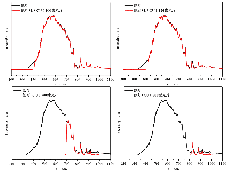 4.截止滤光片命名简称包含“CUT”开头,常见型号有4种,分别为UVCUT 400、UVCUT 420、CUT 700、CUT 800。